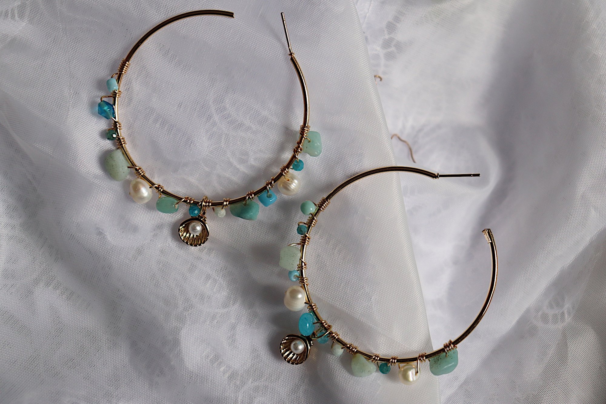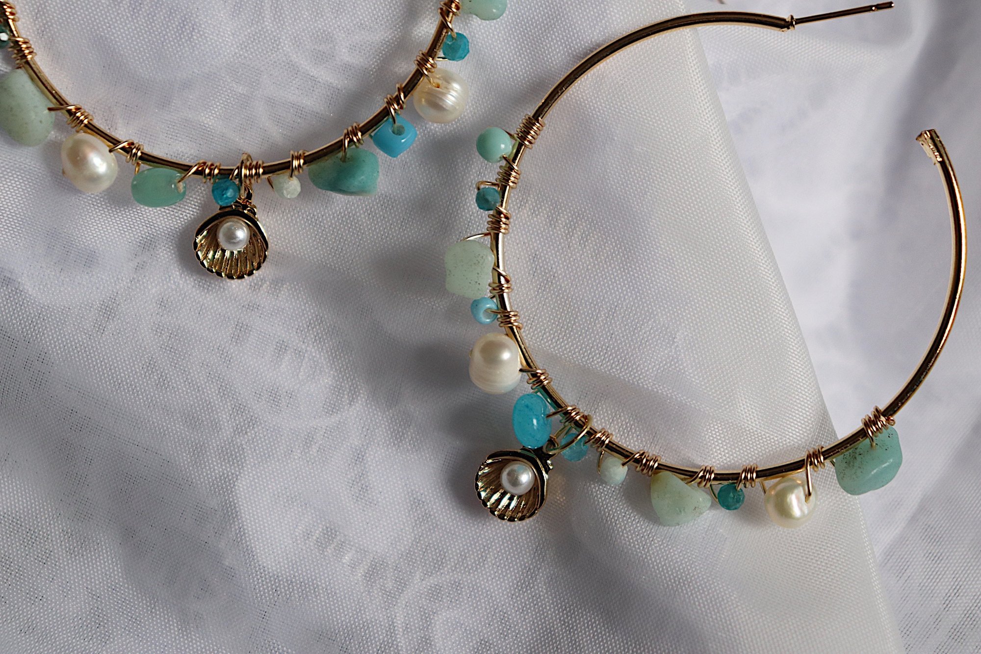 large hoops with wired variety beads and Pearl charm